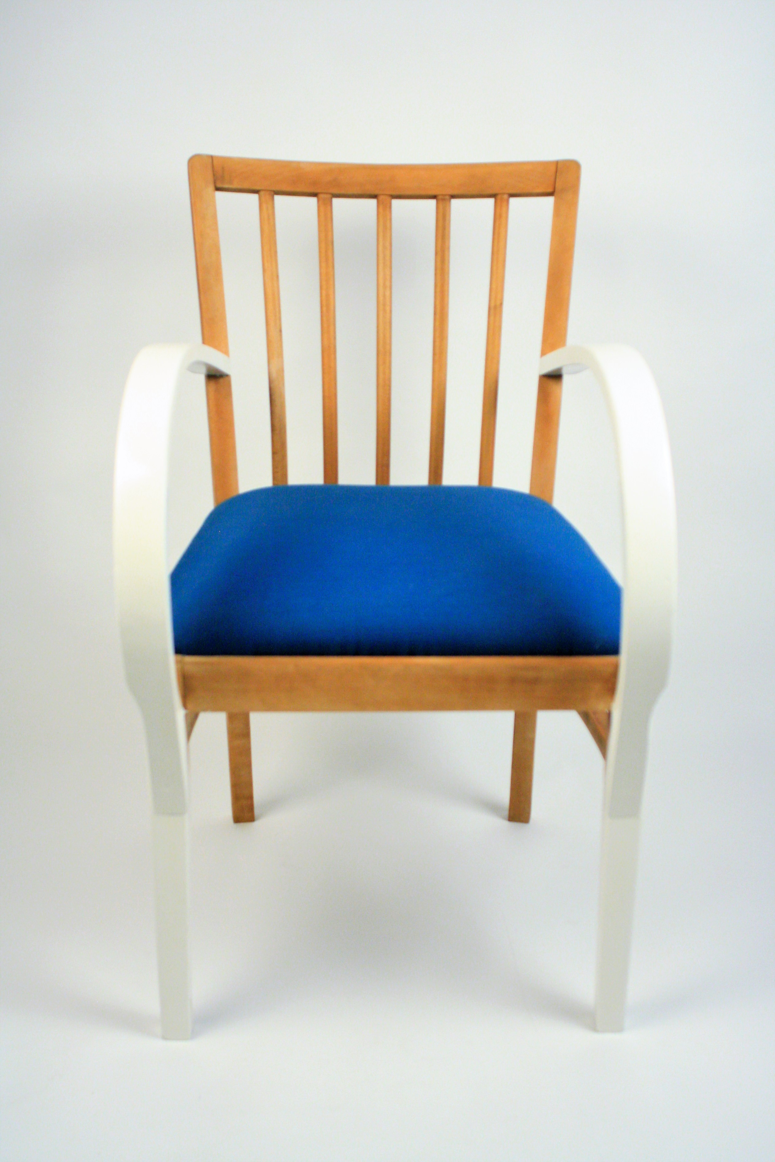 Dieser schöne Stuhl wurde im hohen Bogen von seinem Vorbesitzer auf die Straße geworfen. Und wahrscheinlich hätten die meisten einen großen Bogen um ihn gemacht, wenn sie vor seinem Make-over auf ihn gestoßen wären. Wir denken nicht, das wir den Bogen überspannt haben, sondern freuen uns, dass er nun wieder den Bogen raus hat!