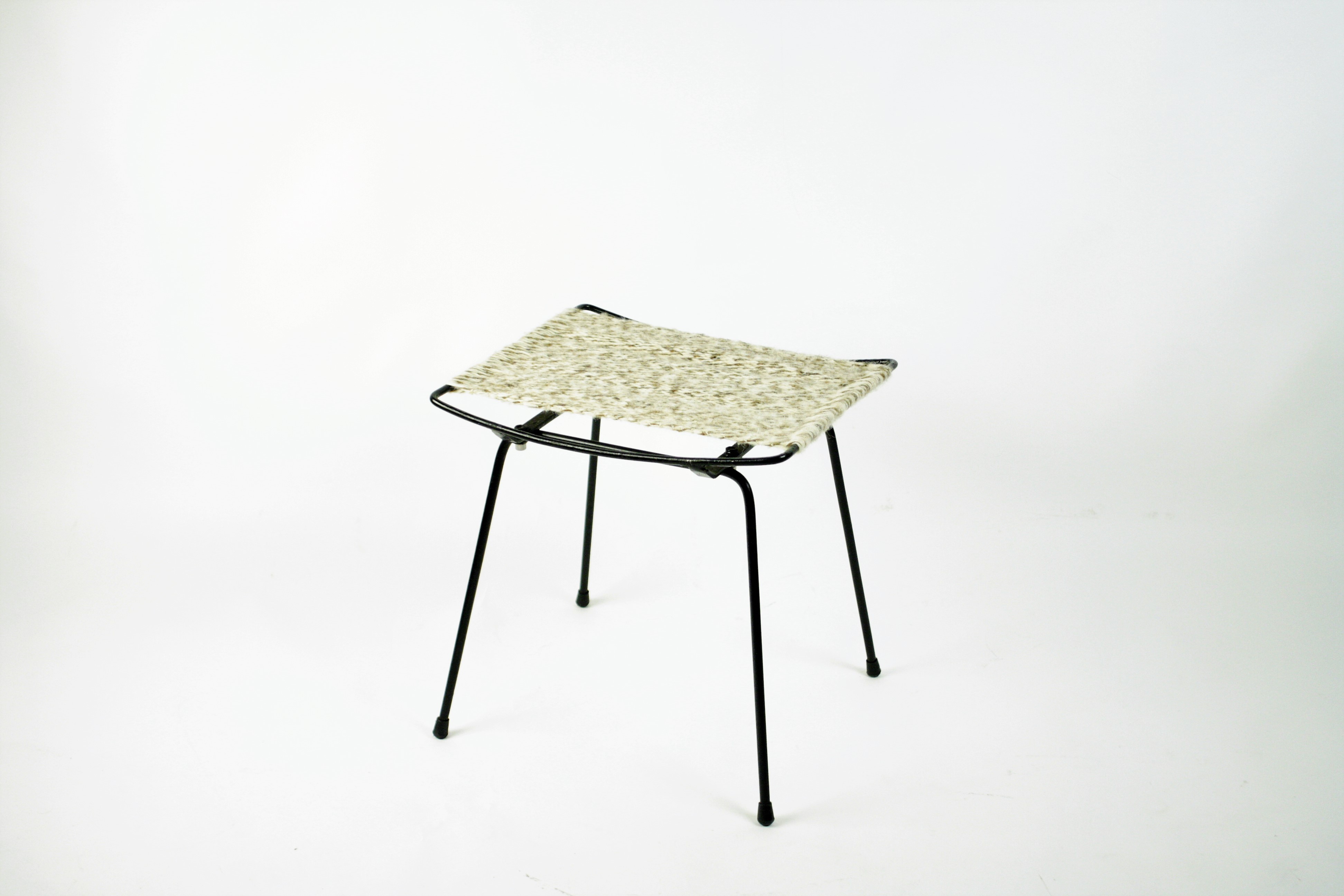 This filigree stool – named after Athene’s epithet with means „protectress of the craftsmanship (particularly the weaving)“ is made from the steel structure of a former chair with a handmade woven seating surface.