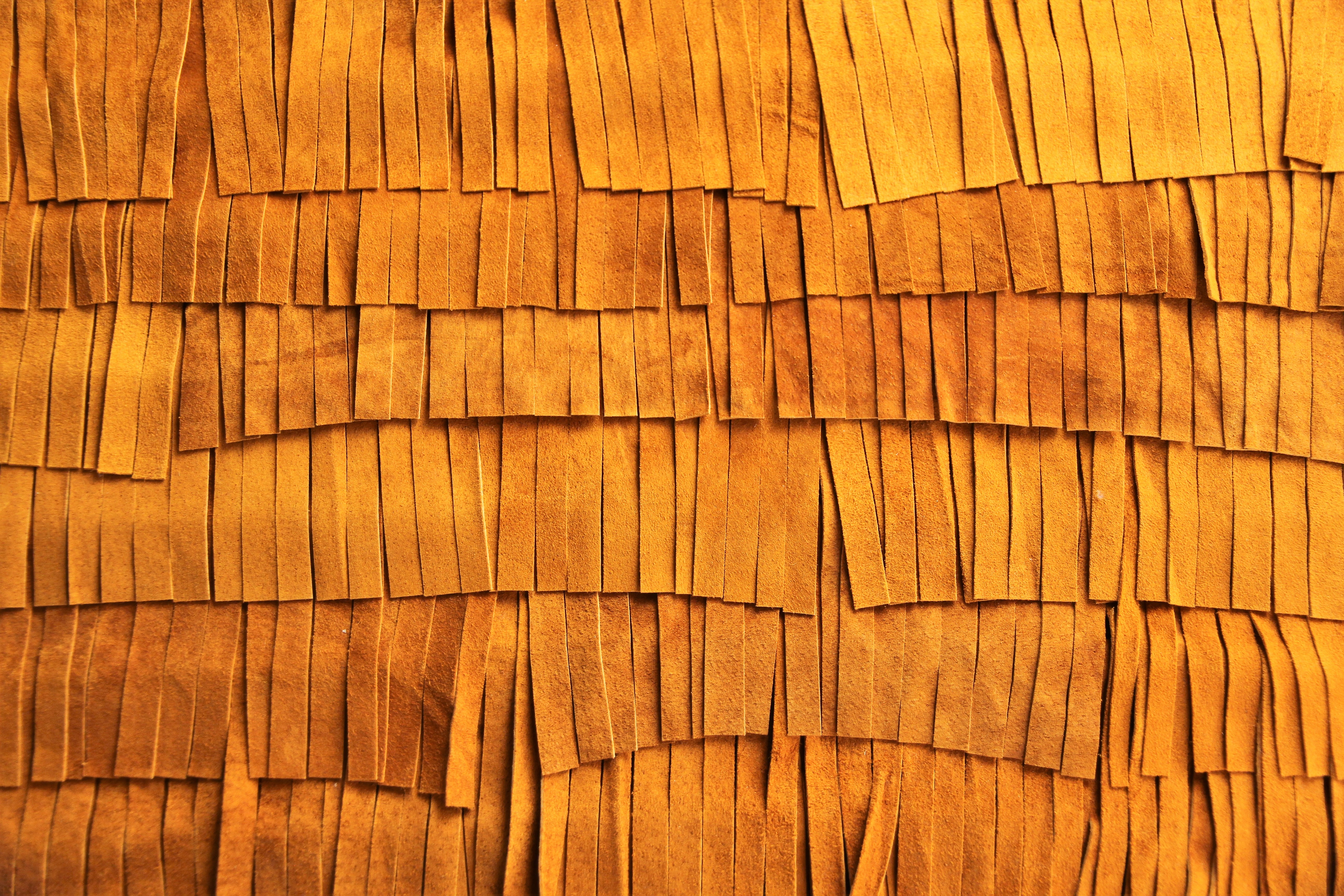 Die schwarz lackierten Metallbeine, ursprünglich von einem ausrangierten Stuhl stammend, unterstreichen die besondere Farbgebung der Fransen aus Antikleder, welche aufwendig einzeln per Hand geschnitten wurden. Der sich je nach Lichteinfall leicht verändernde Schimmer des Wildleders verleiht der Sitzfläche einen besonderen Reiz. (Farbton kann je nach Bildschirm vom Original abweichen.)