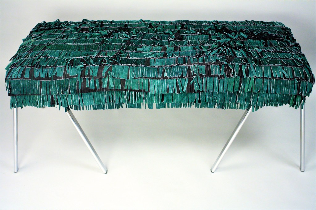 Another unique item in our fringe bench category. Leather fringe bench DAS UNGESTÜME UNGETÜM in black-green.