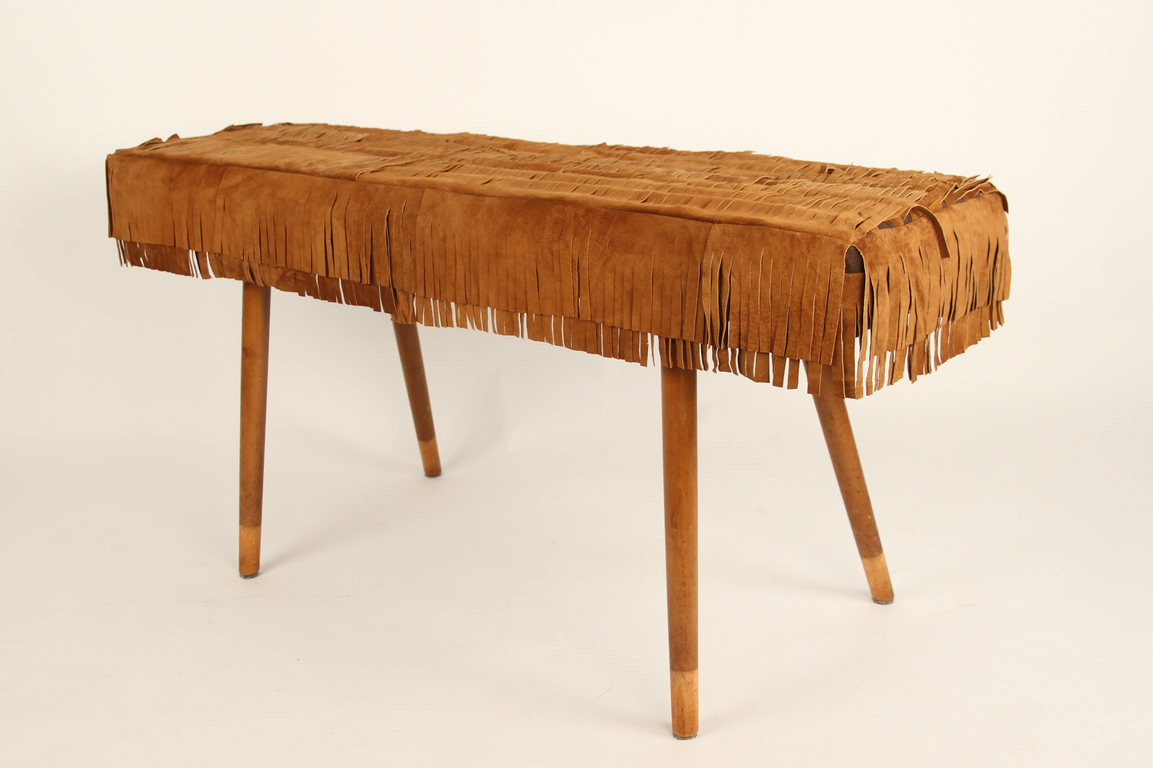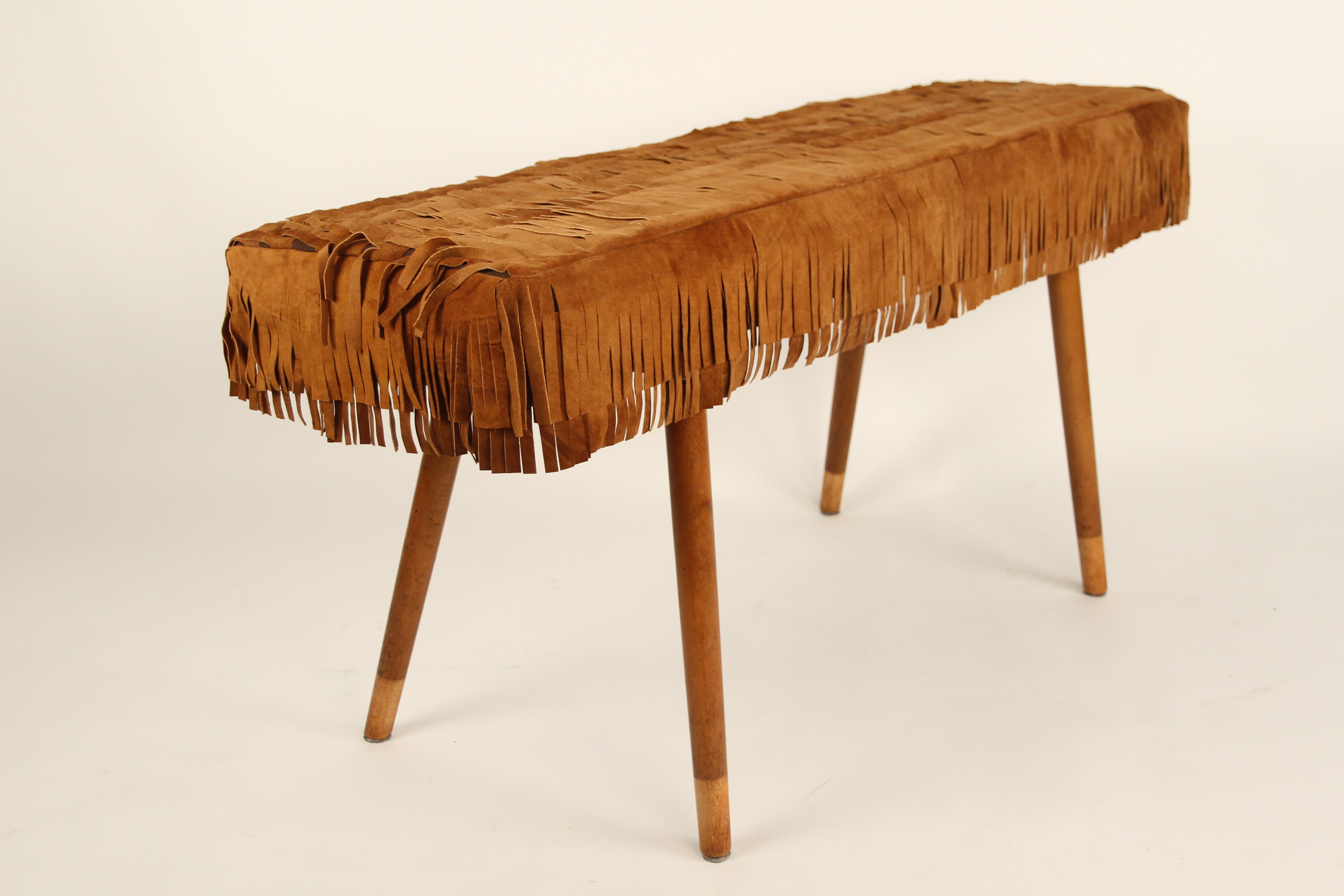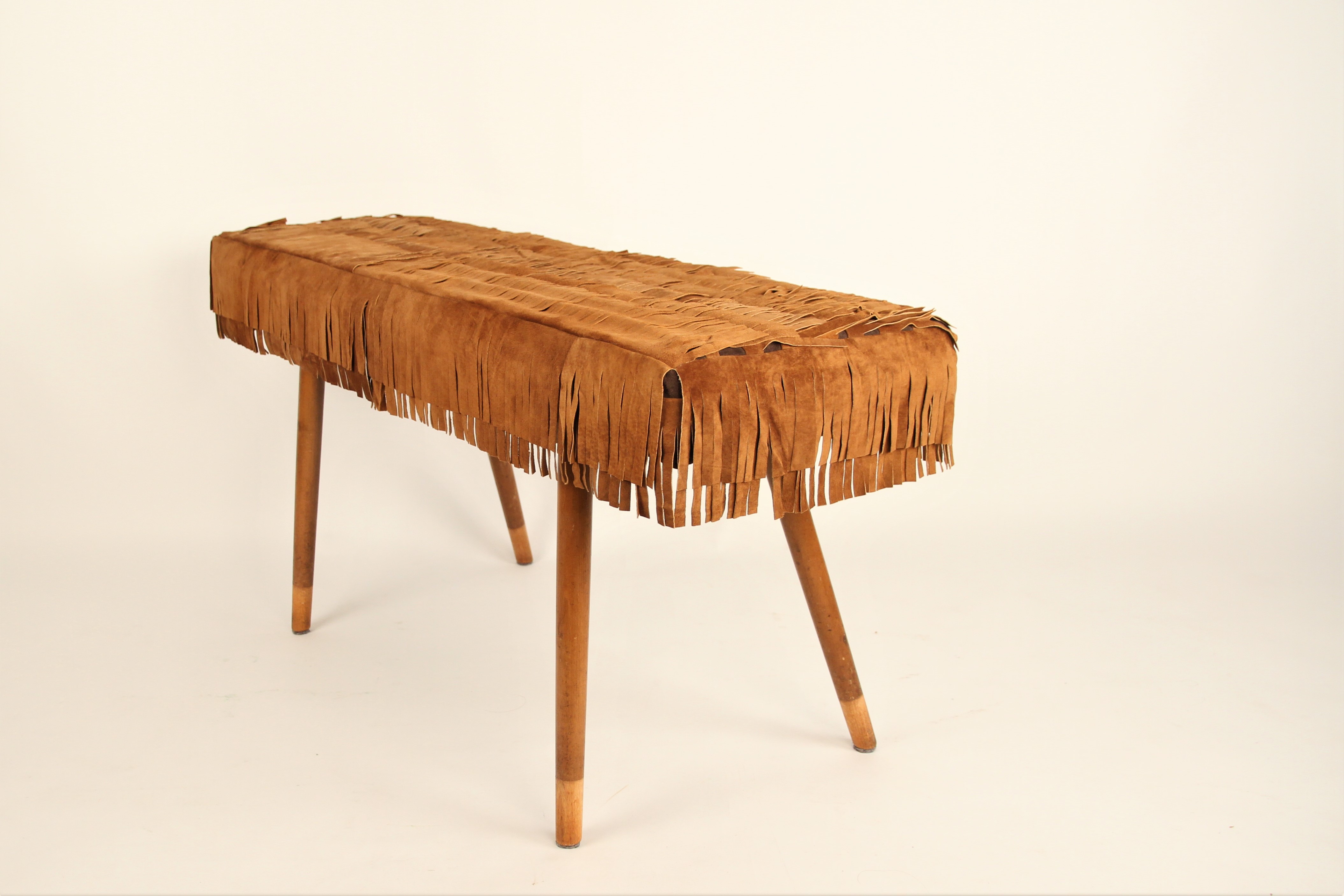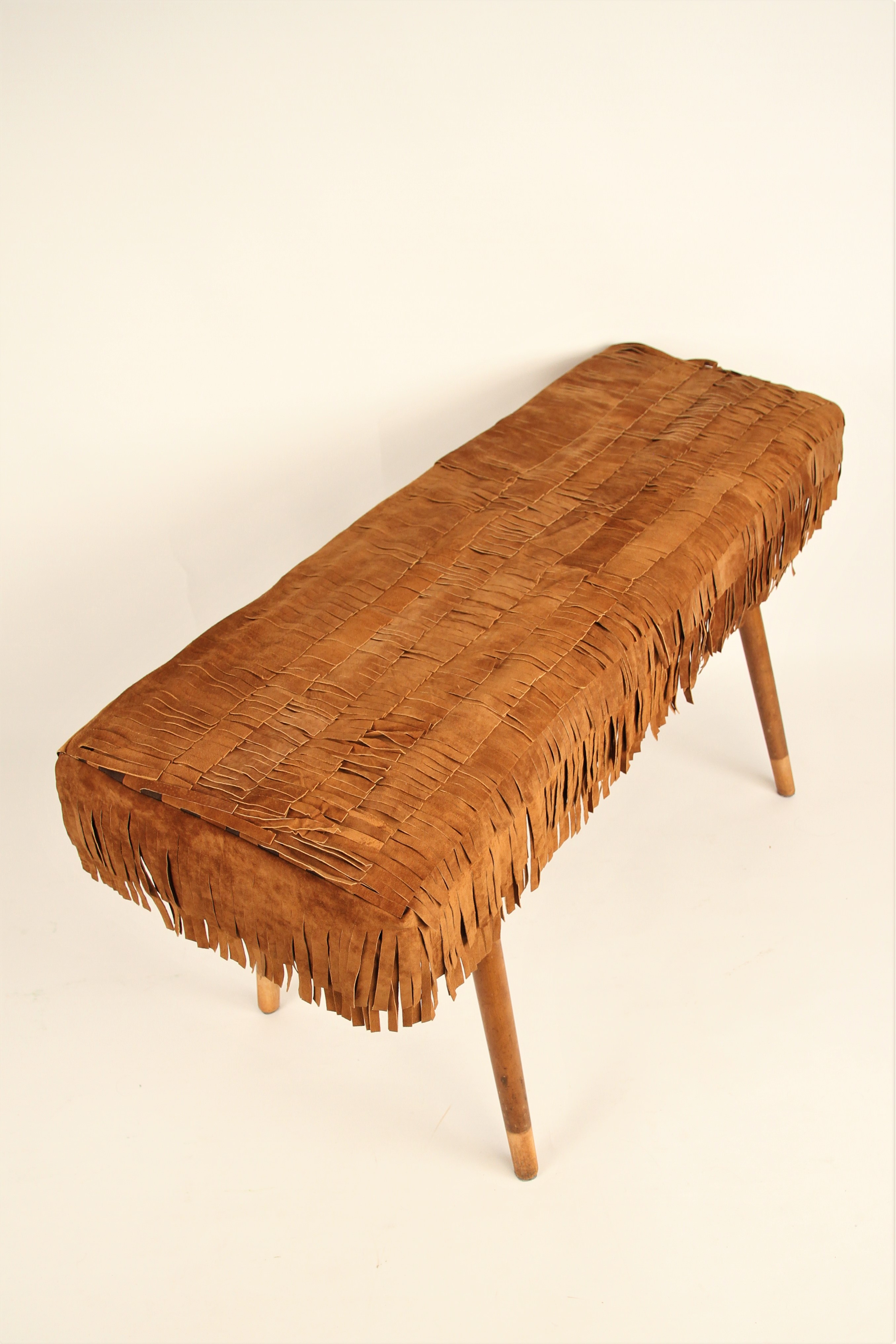This bench is made from leftover leather from a former cobbler’s shop and the legs of a discarded chair.